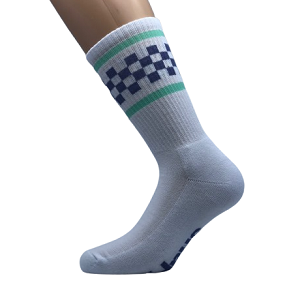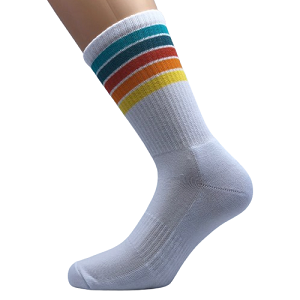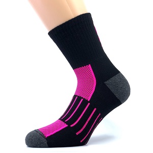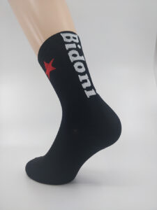 Socken zum Laufen teilen sich Eigenschaften mit Fahrradsocken aber sind jedoch für das Laufen geeignet. Sie haben ein zusätzliches verstärktes Gummiband für verbesserten Halt und eine andere Struktur in der Sohle. Normalerweise produzieren wir knöchellange Socken.