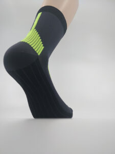 - Ein Kompressionsgummi, das den Fuß stabilisiert und die Kompression erhöht. Es kann durch die gesamte Socke oder nur in bestimmten Bereichen hinzugefügt werden.