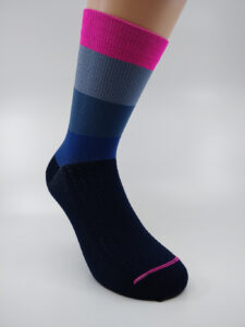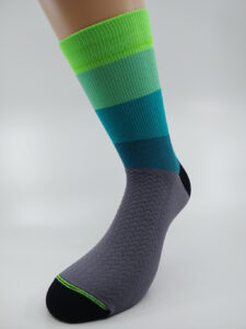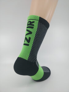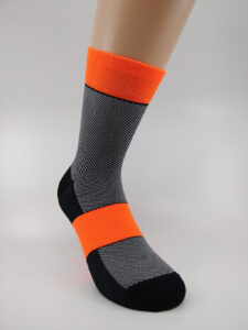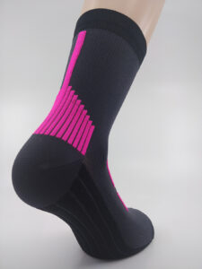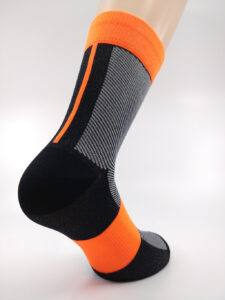 Diese Sportsocken sind spezifisch zum Fahrradfahren beschafft. Sie bestehen aus Mesh-Zonen für bessere Atmungsaktivität und hervorragenden Feuchtigkeitstransport. Sie sind auf die speziellen Bedürfnisse des Fußes abgestimmt, sodass sie optimalen Komfort bieten und die Füße während des Radfahrens trocken und frisch halten. Je nach Einsatzzweck wie Wettkampf, Training oder Regeneration können wir eine bestimmte Kompressionsrate hinzufügen, um das gewünschte Ergebnis zu erzielen. Oft sind sie hoch und Neonfarben.